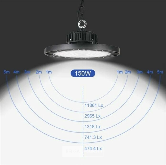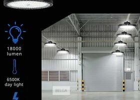 40 x Highbay UFO 150 Watt LED PRO design biedt hoge efficiëntie met 18.000 lumen bij 120 lumen per watt - Uitgerust met Professioneel LED voor superieure helderheid en betrouwbaarheid - Dimbaar met een schakelaar die 3 verschillende standen biedt: 60%/80%/100% vermogen - Aangedreven door een hoogwaardige Lifud-driver, die stabiele prestaties garandeert - Koud wit licht bij 6500K voor heldere, duidelijke verlichting - Waterdicht met een IP65-classificatie, ideaal voor zowel binnen- als buitengebruik - Afmetingen: Ø 310mm x 102mmmm voor eenvoudige installatie - Duurzame constructie van gegoten aluminium met een PC-lens, met een levensduur van 30.000 uur - 90° stralingshoek voor brede lichtdekking - Energiezuinig met een power factor >0,95 - Hoge CRI >80 voor nauwkeurige kleurweergave - Compatibel met 110-265V - Geleverd met 5 jaar garantie voor gemoedsrust - Weinig onderhoud door de lange levensduur - Efficiënte warmteafvoer voorkomt oververhitting - Milieuvriendelijk en kosteneffectief, verlaagt de energiekosten - Biedt flikkervrij, stabiel licht.