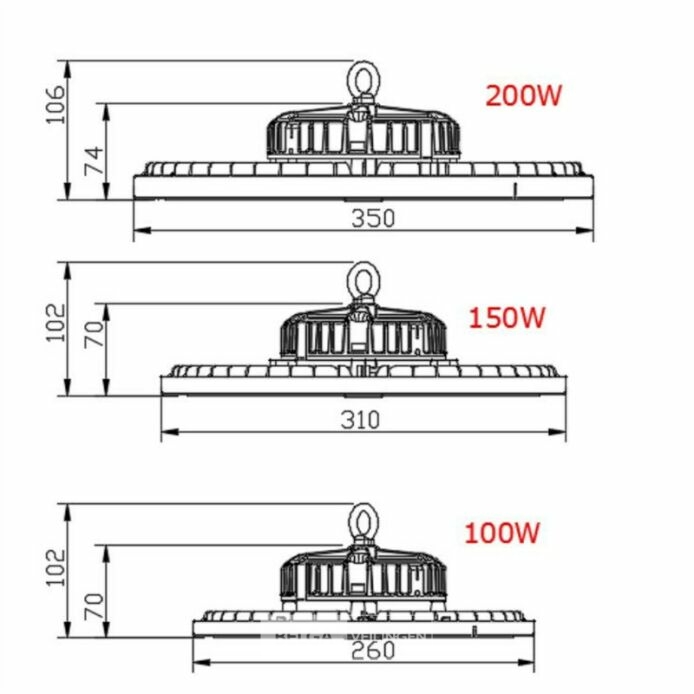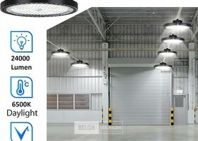8 x Highbay UFO 200 Watt LED PRO design biedt hoge efficiëntie met 24.000 lumen bij 120 lumen per watt - Uitgerust met Professioneel LED voor superieure helderheid en betrouwbaarheid - Dimbaar met een schakelaar die 3 verschillende standen biedt: 60%/80%/100% vermogen - Aangedreven door een hoogwaardige Lifud-driver, die stabiele prestaties garandeert - Koud wit licht bij 6500K voor heldere, duidelijke verlichting - Waterdicht met een IP65-classificatie, ideaal voor zowel binnen- als buitengebruik - Afmetingen: Ø 350mm x 106mm voor eenvoudige installatie - Duurzame constructie van gegoten aluminium met een PC-lens, met een levensduur van 30.000 uur - 90° stralingshoek voor brede lichtdekking - Energiezuinig met een power factor >0,95 - Hoge CRI >80 voor nauwkeurige kleurweergave - Compatibel met 110-265V - Geleverd met 5 jaar garantie voor gemoedsrust - Weinig onderhoud door de lange levensduur - Efficiënte warmteafvoer voorkomt oververhitting - Milieuvriendelijk en kosteneffectief, verlaagt de energiekosten - Biedt flikkervrij, stabiel licht.