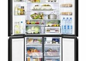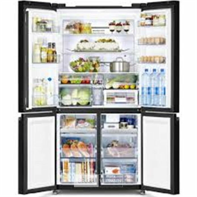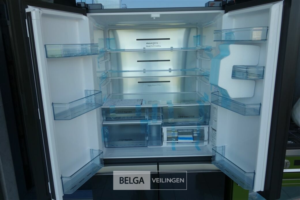 Koel-vriescombinatie,4 deurs,zwart glas,no-frost,led-verlichting,hoogte 184 cm,touchschreen,90 cm