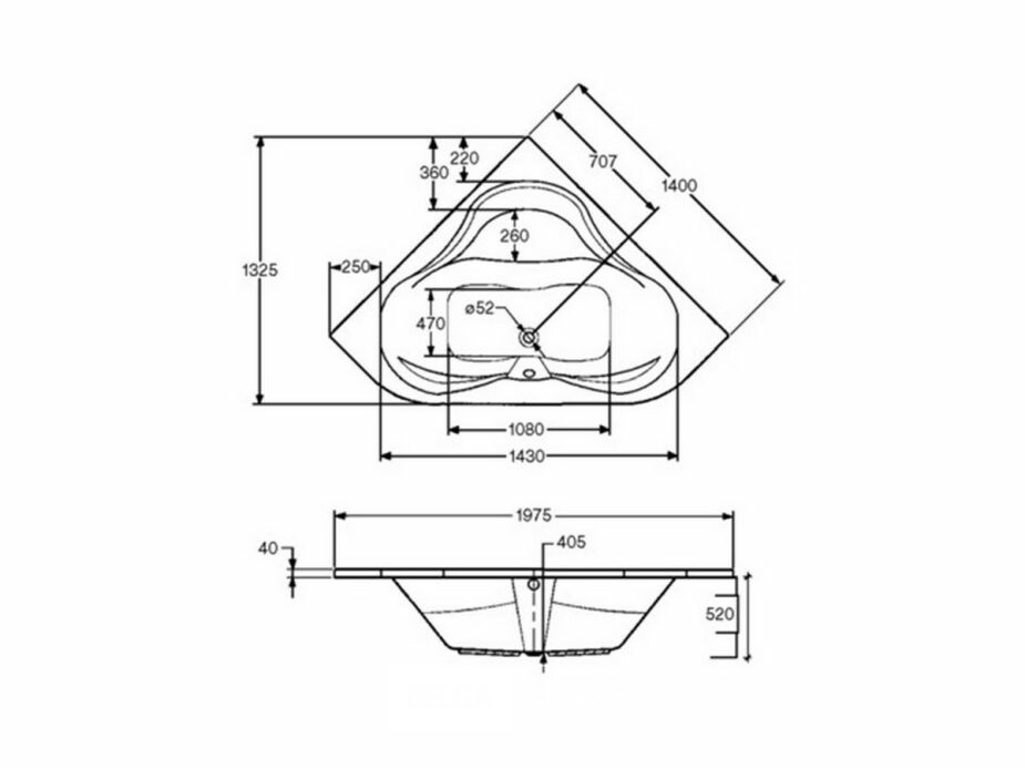 Gemaakt van sanitair acryl 40,5x140x140cm