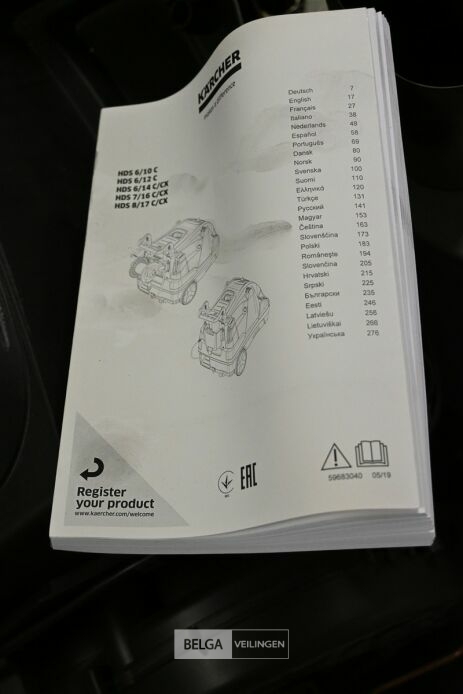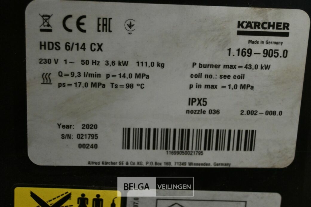 Hogedrukreiniger Karcher Professionel HDS 6/14 CX, Bouwjaar 2020, 230V met Muurhaspel, watergekoelde elektromotor, 1-knops bediening, geïntegreerde tanks, 3,6 Kw, wateropbrengst 240-560 l/u, vermogen 3,6 Kw, verbruik stookolie 3,5 Kg/h, OPGELET: De werking van het artikel is onbekend en niet getest. Het artikel kan geïnspecteerd worden tijdens de kijkdag. Het artikel wordt verkocht in de staat waarin het zich bevindt, met zichtbare en onzichtbare gebreken.