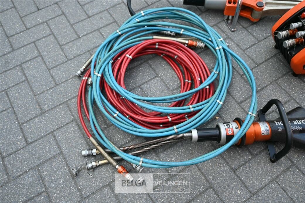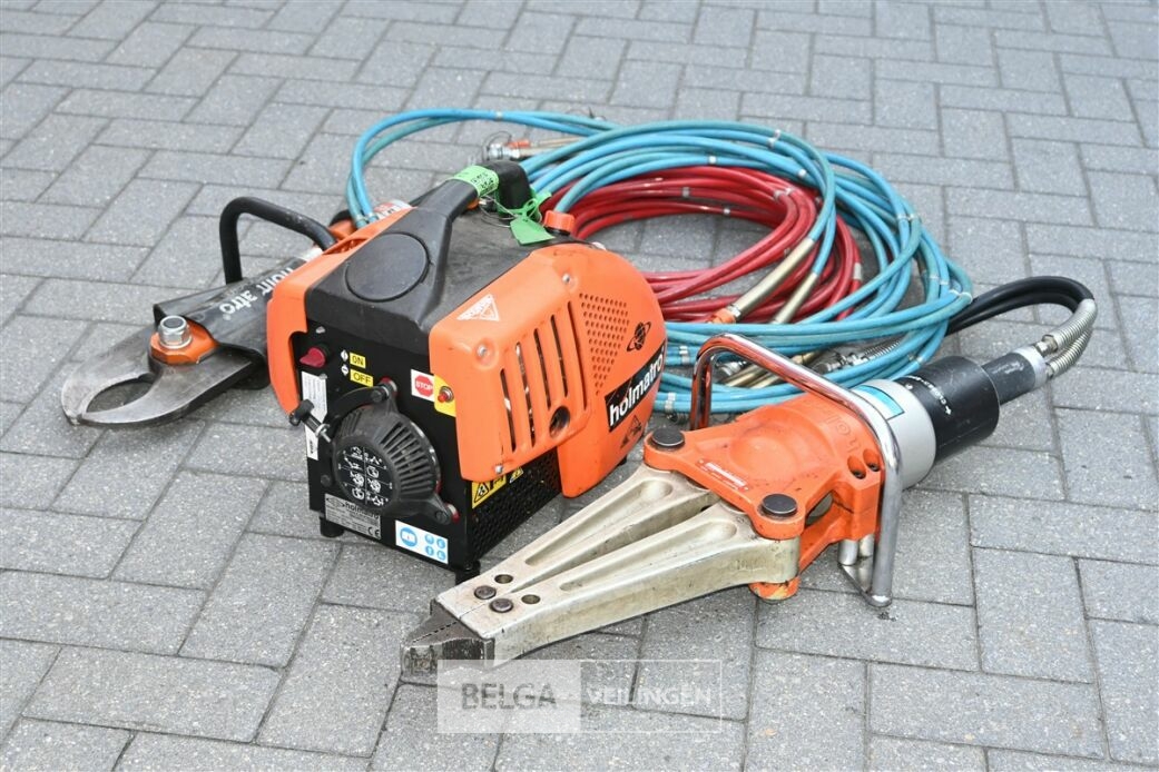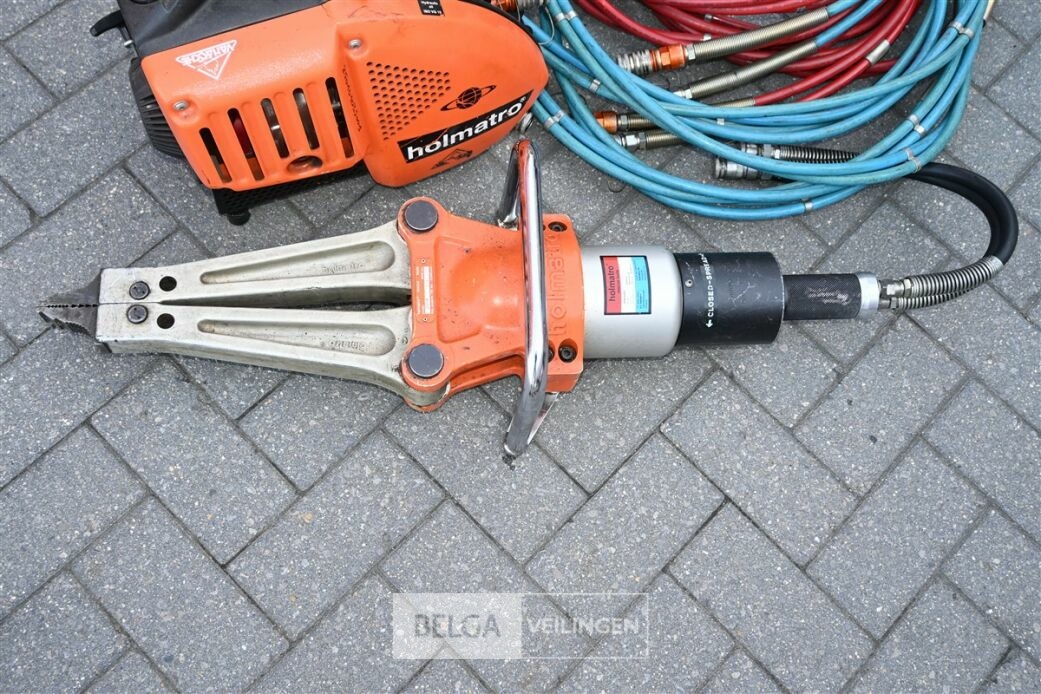 HOLMATRO hydraulische pomp (model TPU15) met schaar (HOLMATRO, model CU3020), spreider (HOLMATRO, model 2008 U) en bijhorende leidingen