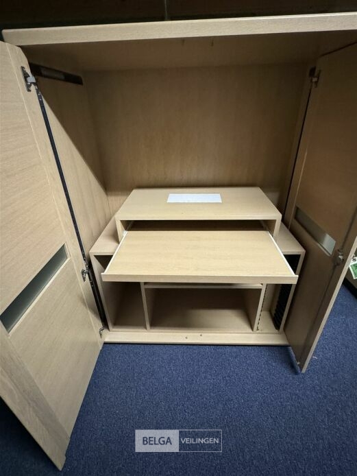 Houten computerkast met schuifdeur afm. 150 cm X 120 cm X 60 cm