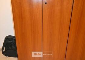 Houten dossierkast, afm 80x54x127cm, zonder de inhoud op de foto's. Opgelet! Dit lot bevindt zich op de eerste verdieping en dient door de koper zelf naar beneden te worden gebracht.
