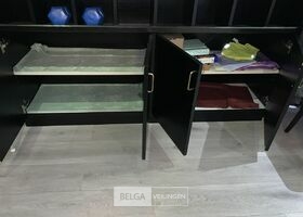Houten kast met marmeren blad L 180 x B 44 x H 96 cm