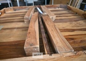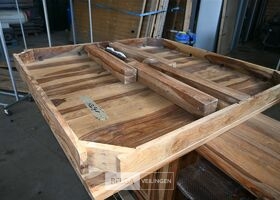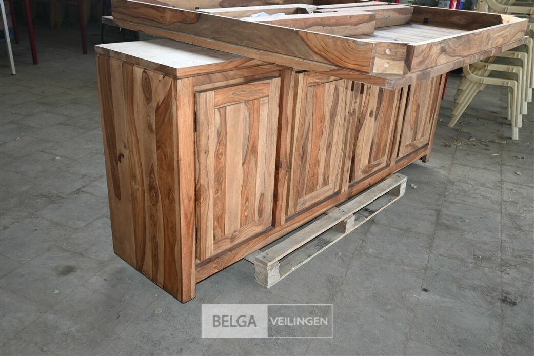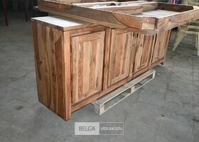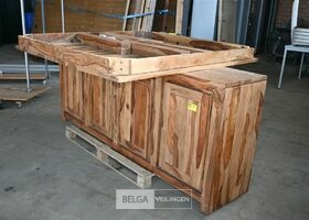 Houten kast (200x45x80cm) + tafel (140x140x75cm)