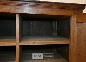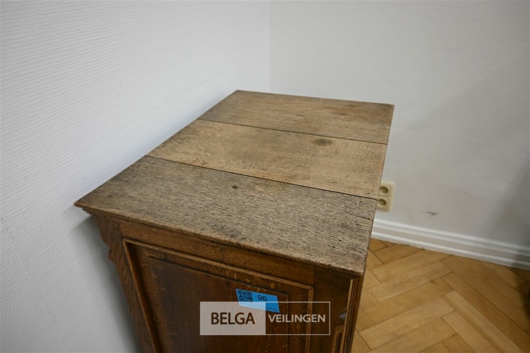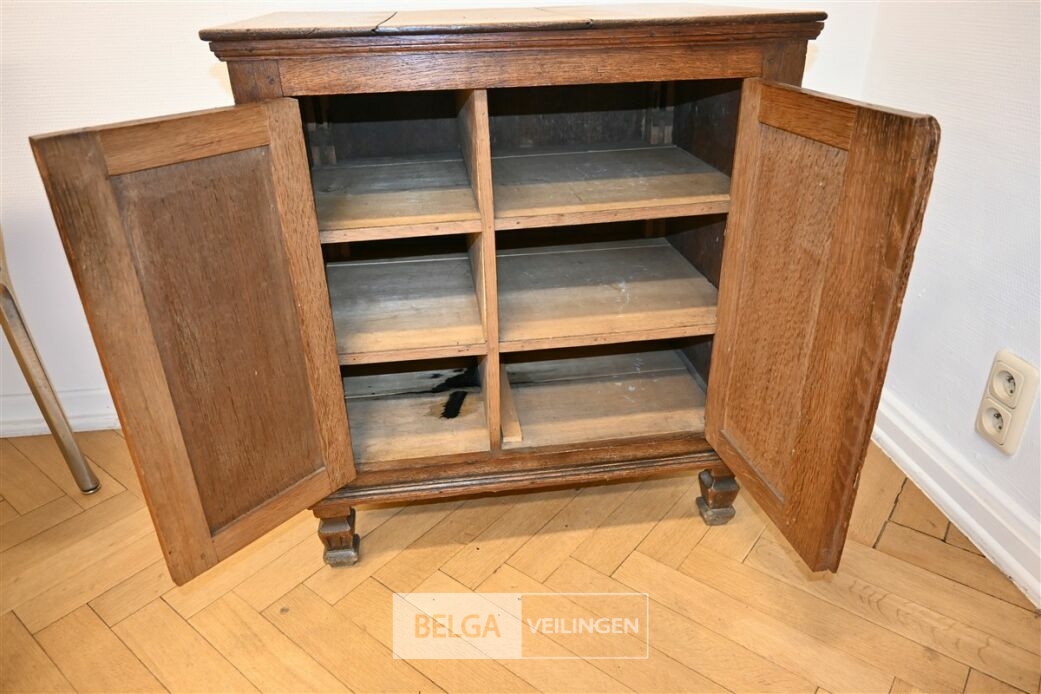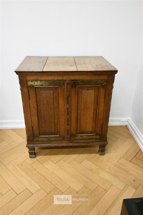 Houten kast, afm 65x46x71cm. Opgelet! Dit lot bevindt zich op de eerste verdieping en dient door de koper zelf naar beneden te worden gebracht.