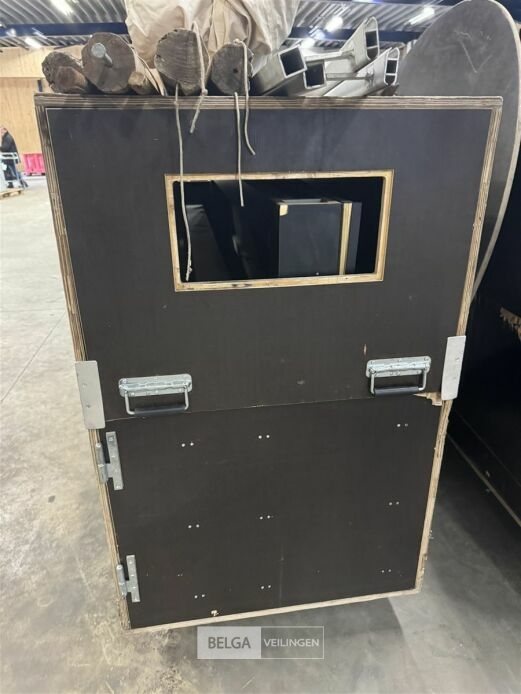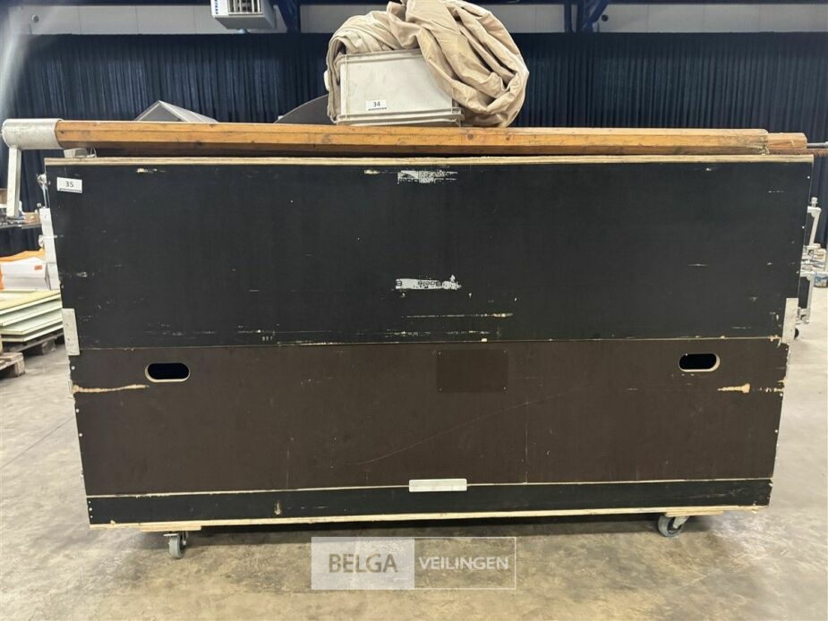 houten kist op wielen met opplooibare toog afm kist ± 232x79x120 cm
