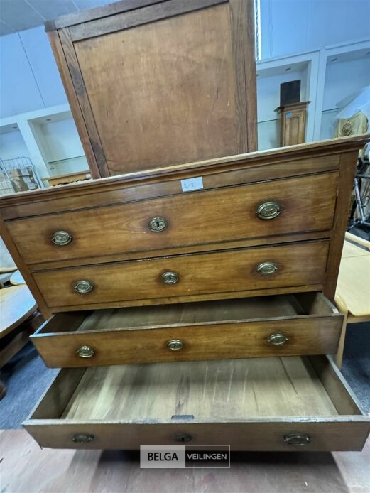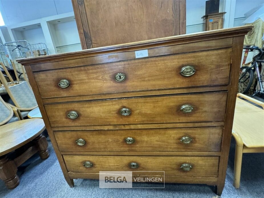 Houten ladekast met 4 lades – afm (±135 cm x 55 cm x 116 cm ) – zonder sleutels – bovenste 2 lades gesloten