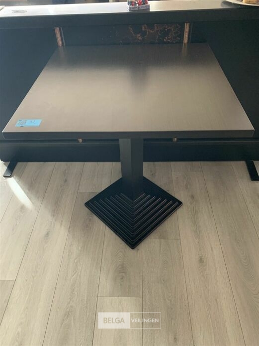 houten tafeltje met metalen voet. Afm 70 x 70 x 76 cm.