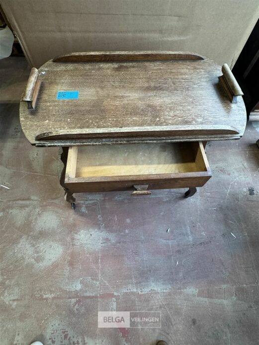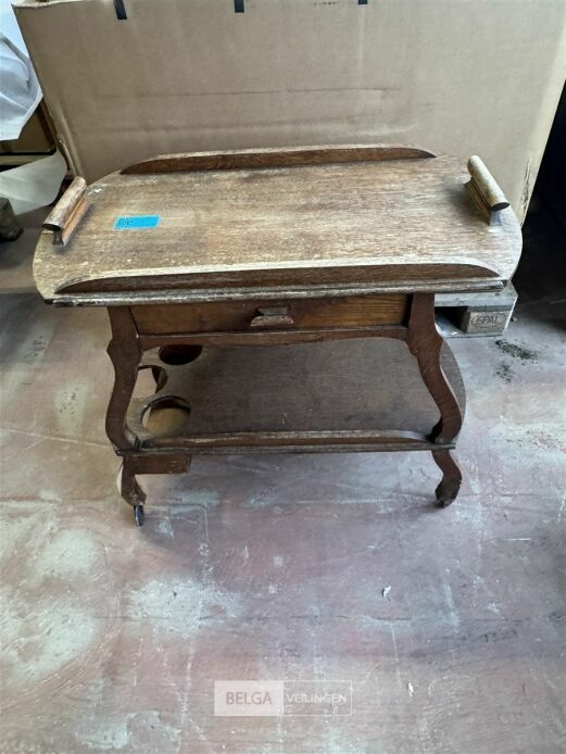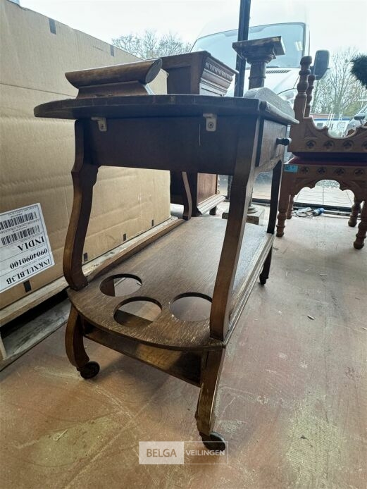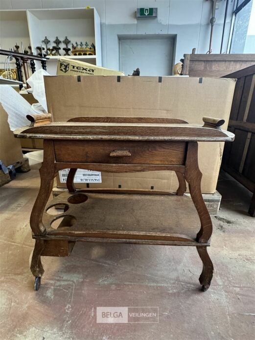 Houten theewagen op wielen met 2 niveau's incl. uitsparingen voor flessen (afm. ± 76 cm X 43 cm X 69 cm – lade: afm. ± 34 cm X 38 cm)