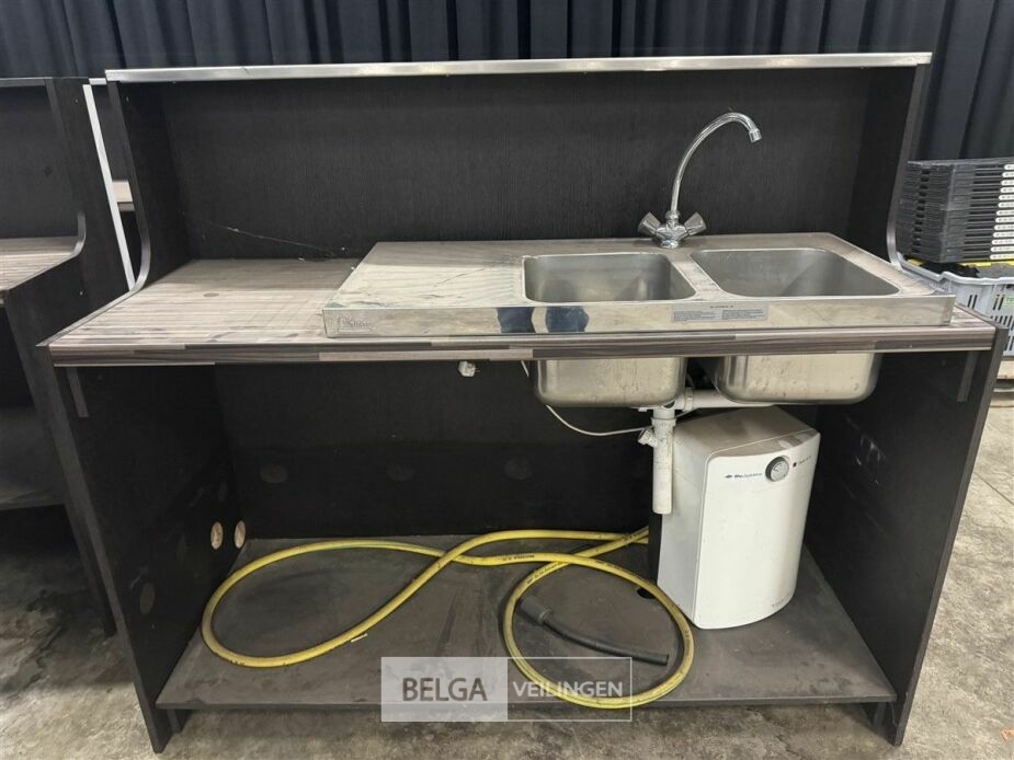 houten toog met spoelbak en boiler afm toog ± 153x60x130 hoogte werkblad ± 90cm