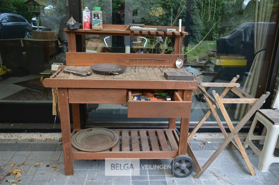 houten verrijdbare buitenkeuken met inhoud