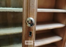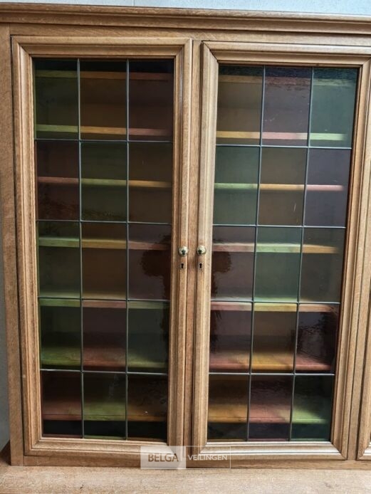 Houten vitrinekast – afm ± 210 x 40 x 200 cm