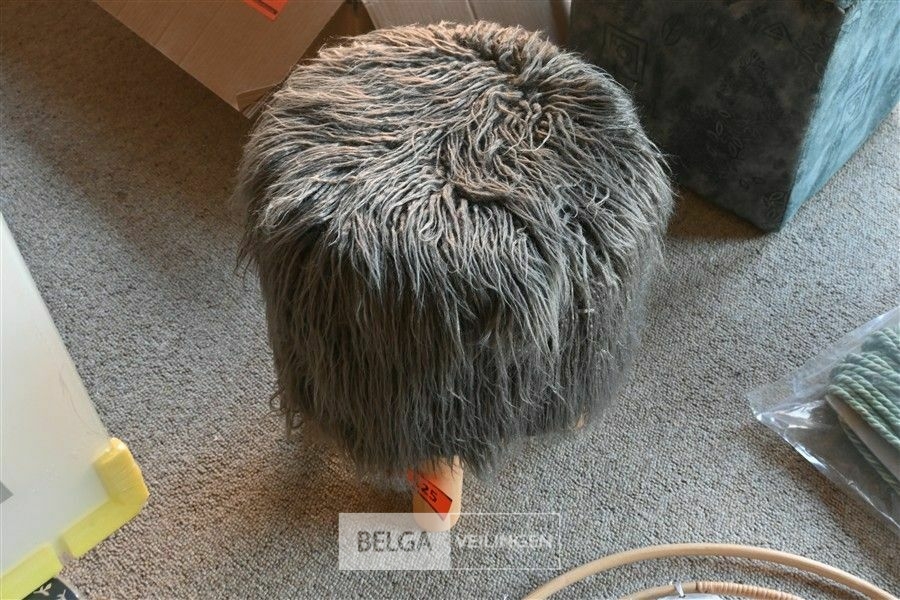 houten voetbankje met wolbekleding Ø 35 H 40cm