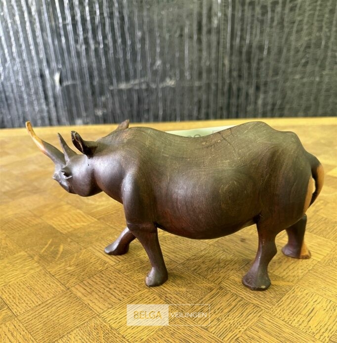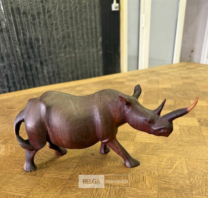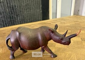 Houten zwarte neushoorn beeldje
