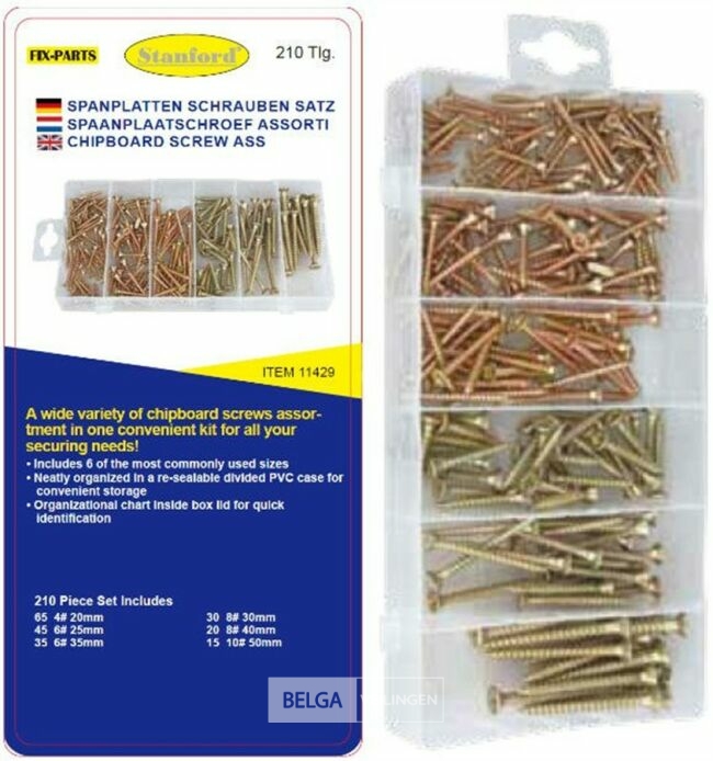 210 Delige hout kruiskopschroeven set - in 6 meest courante maten