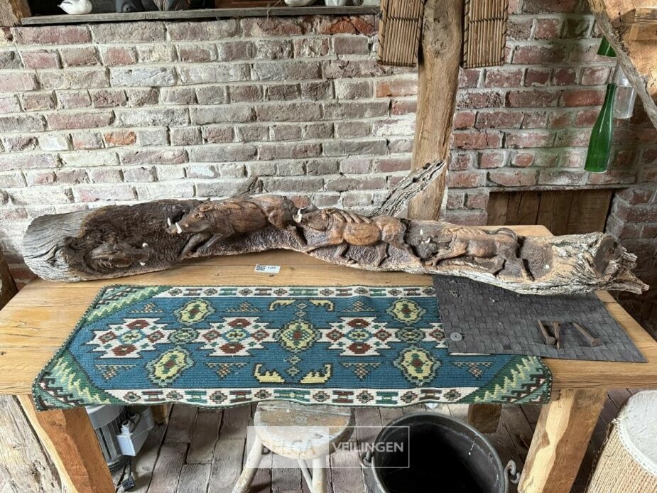 Houtsculptuur met everzwijnen 1.40 cm