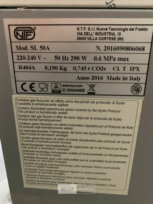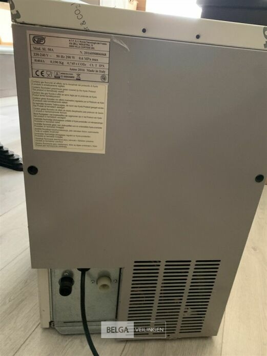Ijsblokjes machine, model SL50A, 290 W., 220 V. , H 62,5 x B 39 x D 62,5 cm. De aangeboden kavel werd niet onderzocht op gebreken en niet getest op werking. Maak gebruik van het kijkmoment om u te voorzien van de nodige indrukken.