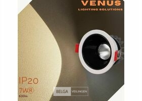 100 x LED inbouwspot – Kleur: wit/zwart – Type: COB – Vermogen: 7W – Lichtstroom: 630 lumen – Kleurtemperatuur: 3000K (warm wit) – IRC >80 – Beam hoek: 40° – Afmetingen: Ø 86 x 74 mm (installatiediameter:Ø 75 mm) – Spanning: 175-265V – Materiaal: metaal – Stijlvolle zwart/witte afwerking – Beschermingsgraad: IP20 – Geschikt voor gebruik binnenshuis – Levensduur: 25.000 uur – Efficiënte verlichting voor middelgrote ruimtes.