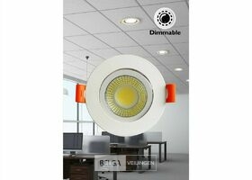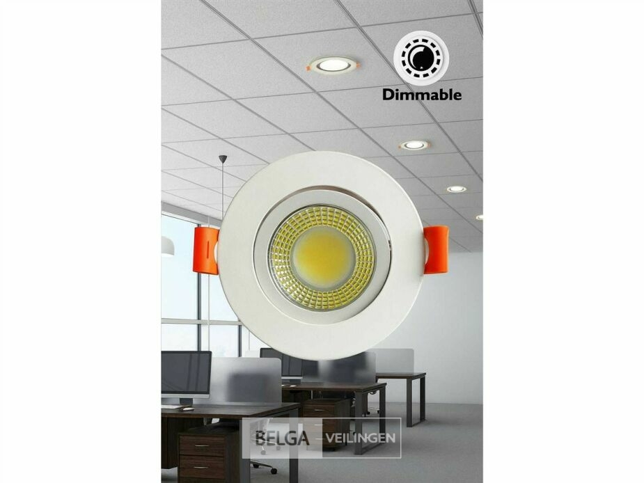 50 x Inbouw LED-spot – Vermogen: 7W – TechnologieCOB – Variabele (dimbare) en draaibare intensiteit – Kleurtemperatuur: 6500K (koud wit) – Lichtstroom: 630 lumen – IRC 80 – Beamhoek: 40° – Ronde vorm – Kleur: wit – Materiaal: metaal – Afmetingen: Ø 88 x 50 mm – Diameter van deCast: Ø 70 mm – Voltage: 220-240V (50/60Hz) – Beschermingsgraad: IP20 – Inclusief lichtbron – Levensduur: 30.000 uur – Perfect geschikt voor moderne en functionele binnenverlichting.