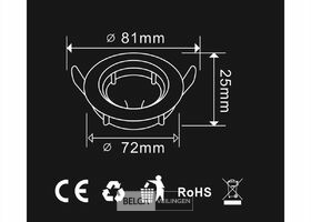 50 x Inbouwarmatuur GU10 met lamphouder – Ingebouwd model – Ronde vorm – Kleur: Zilver Verchroomd – Gemaakt van hoogwaardig aluminium – Afmetingen: Ø 80 x 25 mm – Inbouwdiameter: Ø 70 mm – Draaibaar op ±45° voor een spaalFlexibele bestraling – Beamhoek: 120° – Inclusief GU10-aansluiting – Compatibel met alle GU10- en MR16-spots (LED of halogeen) – Beschermingsgraad: IP20 (binnengebruik) – Lampen niet inbegrepen.