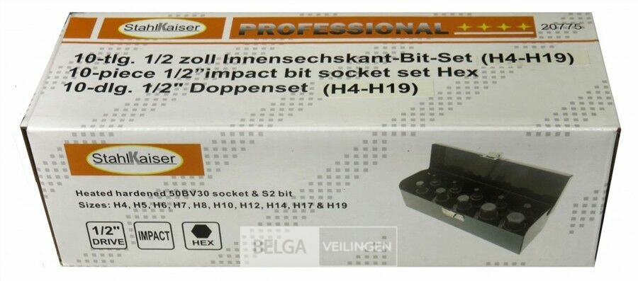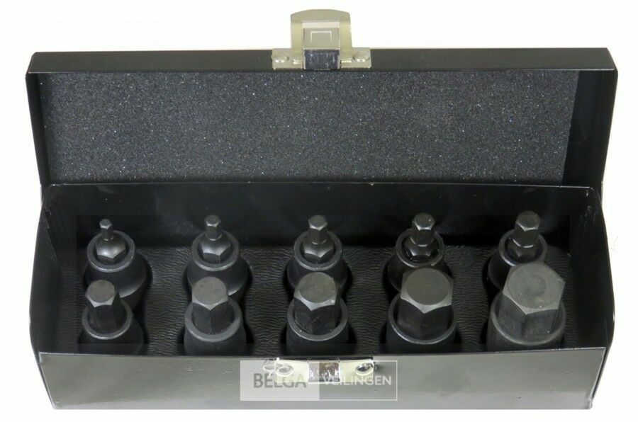 Professionele Kracht inbusdop set 1/2'' 10 dlg-zeer geschikt voor machine gebruik en of handmatig-metalen opbergkist