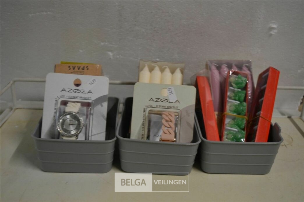 inhoud 3 bakjes ( kaarsen , boedha beeldjes en horloges)