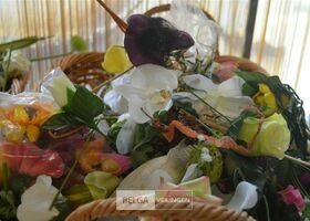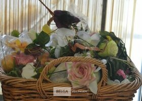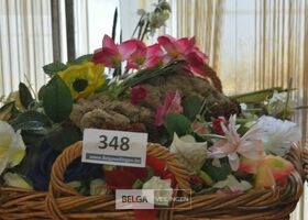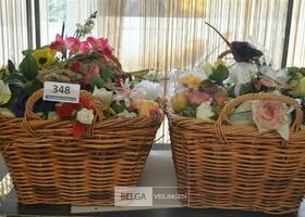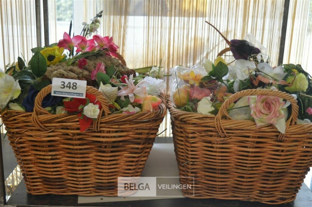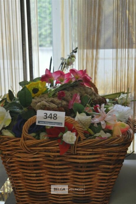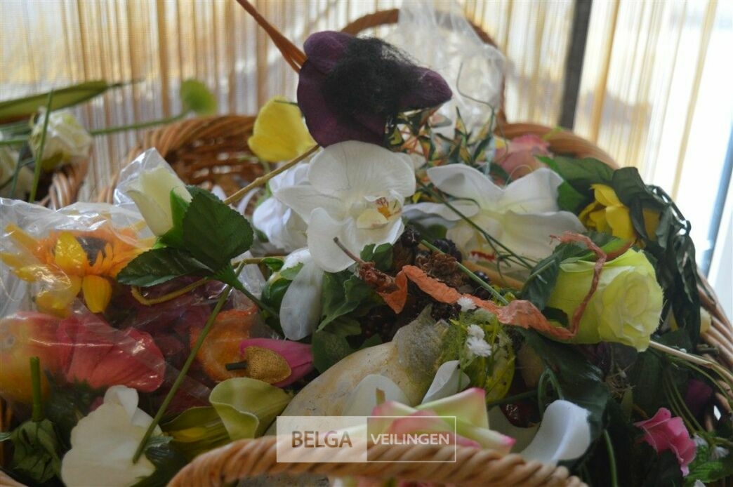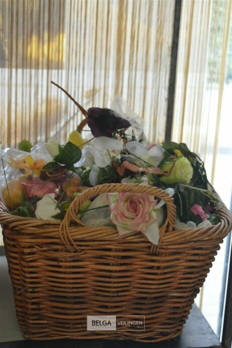 inhoud rieten korf plastieken bloemen