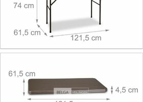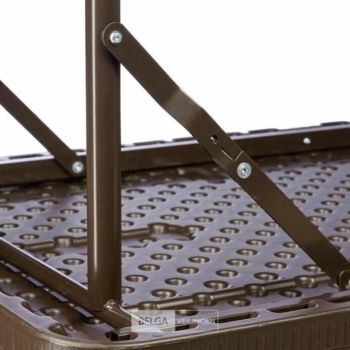 Rotan design tuin/bijzettafel - 74 x 121,5 x 61,5 cm - inklapbaar - kunststof - metaal - rechthoek - bruin-Uv en weersbestendig-retour van relaxdays