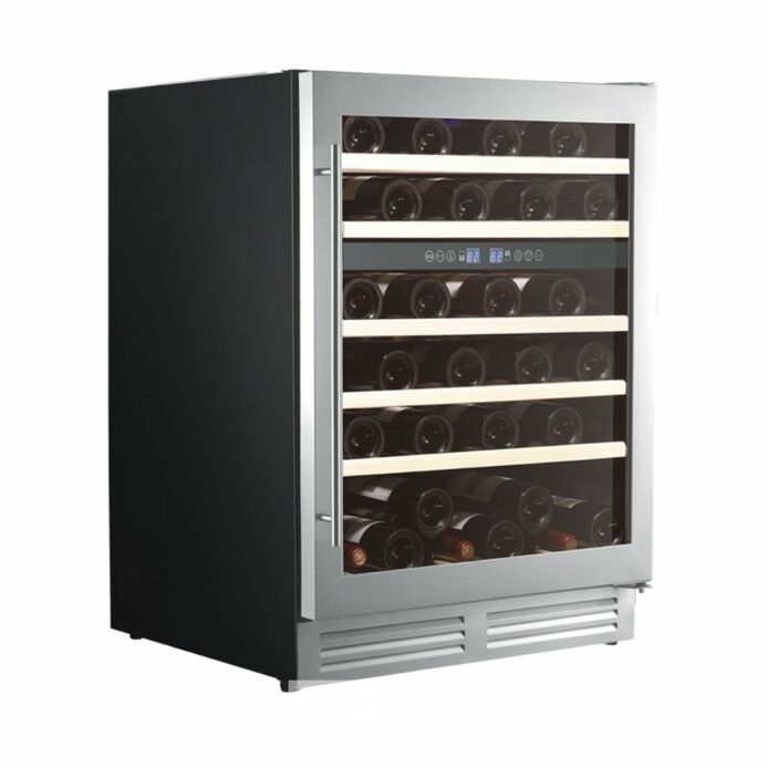 Wijnkoeler,onderbouw, dual zone,Inox,elektronische temperatuurregeling,51 flessen,led-verlichting