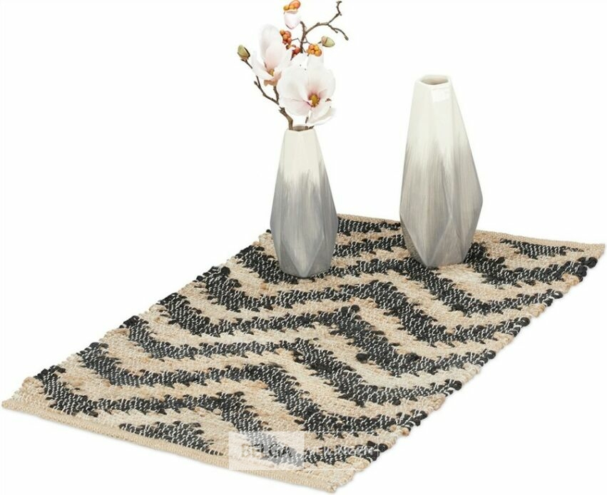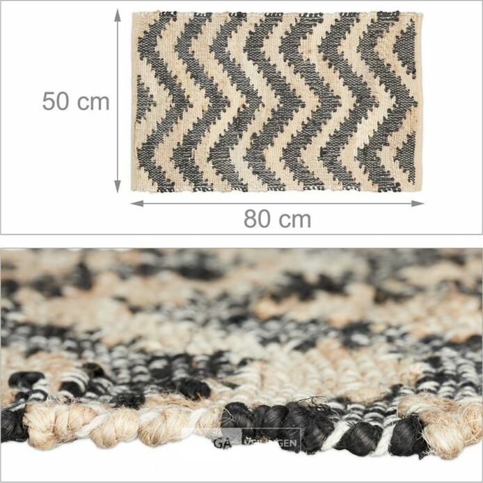 vloerkleed - jute - katoen - 50x80 cm - handgeweven - antislip-retour van relaxdays