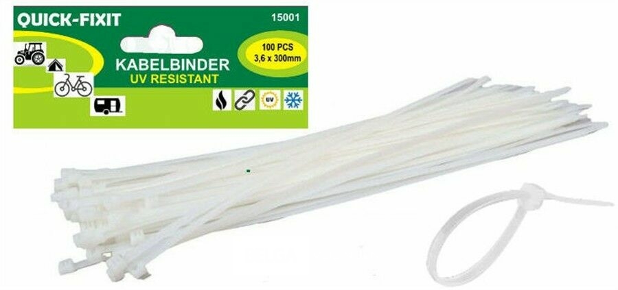 3x100 delig Kabelbinder 3,6 x 300 mm wit-extra sterk-zuur - uv en vorstbestendig