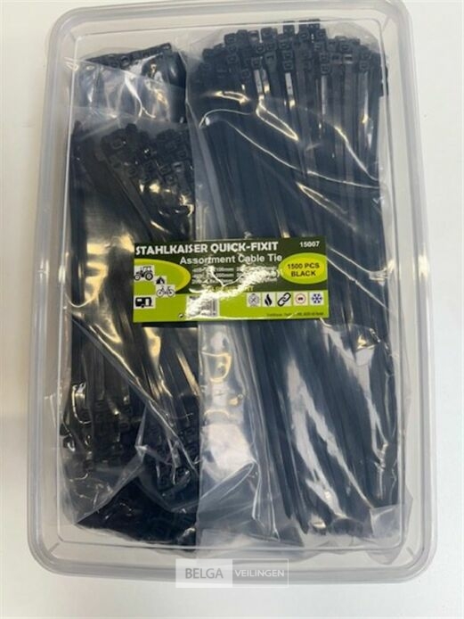 Set met 1500 kabelbinders in opbergbox- diverse maten aanwezig-kleur zwart