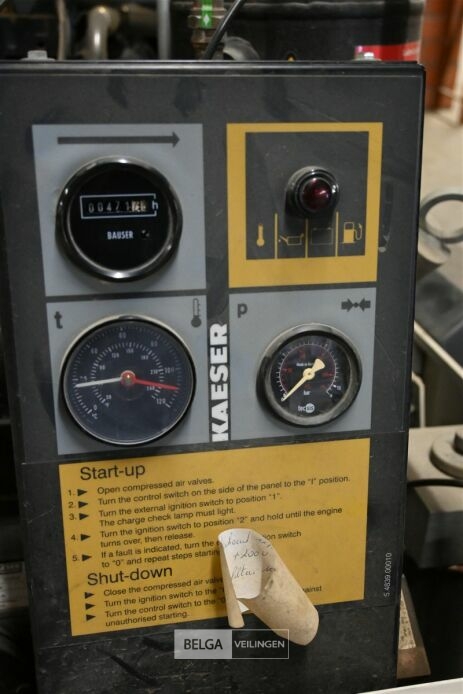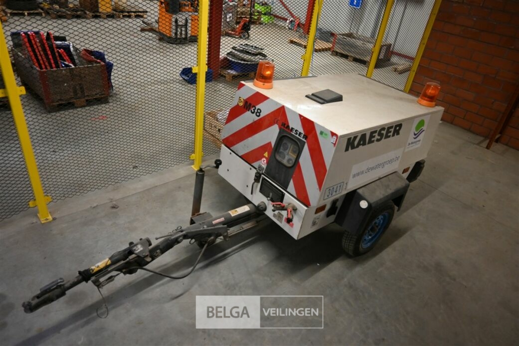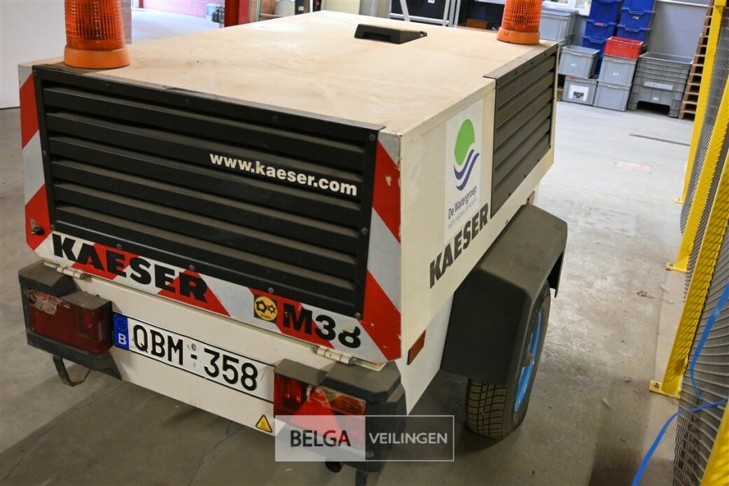 Kaeser Compressor M38, Bouwjaar: 2002, In zeer goede staat, 472 werkuren, OPGELET: De werking van het artikel is onbekend en niet getest. Artikelen met een batterij (voertuigen, machines, e.d.) hebben mogelijk een platte batterij. De koper dient zelf in te staan voor startmiddelen. Het artikel kan geïnspecteerd worden tijdens de kijkdag. Het artikel wordt verkocht in de staat waarin het zich bevindt, met zichtbare en onzichtbare gebreken.