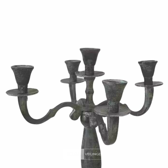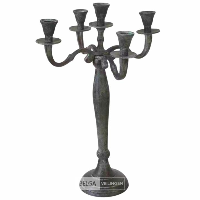 Kandelaar Classic aluminium antiek look 40 cm-vijf armen-Geschikt voor dinerkaarsen van circa 2,2 cm in doorsnee