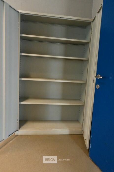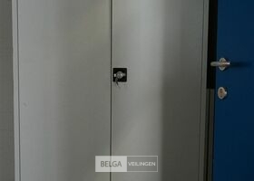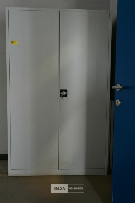 Kast metaal grijs, Grijze Deuren , 4 leggers, 120 cm x 42 cm x 195 cm.