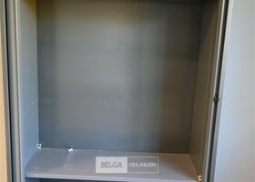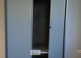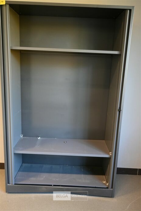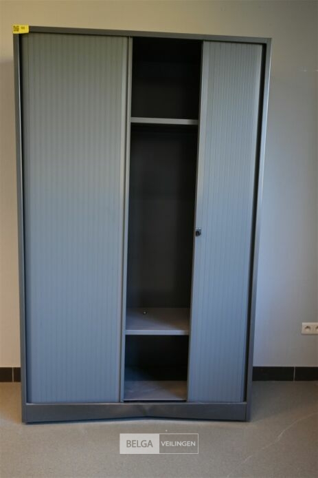 Kast metaal grijs, grijze roldeuren, 100 cm x 48 cm x 198 cm, 2 leggers.
