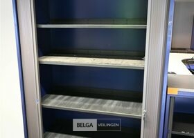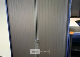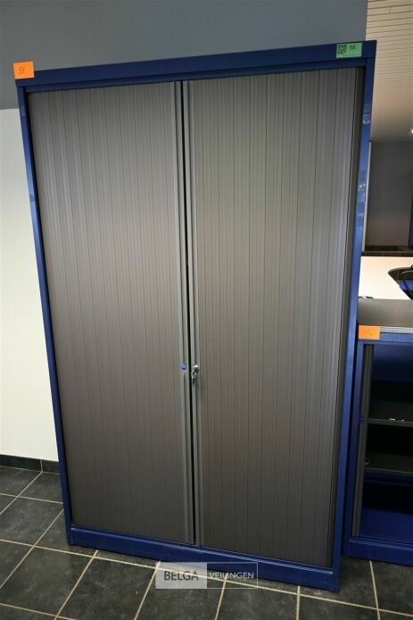 Kast, blauw met donkergrijze roldeuren / 4 leggers, afm 120x48x198 cm