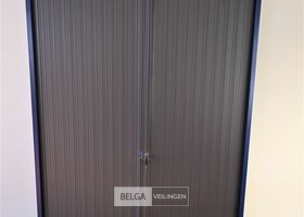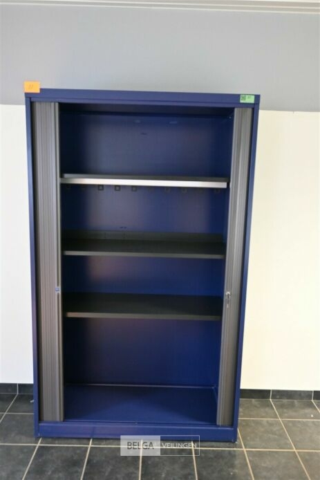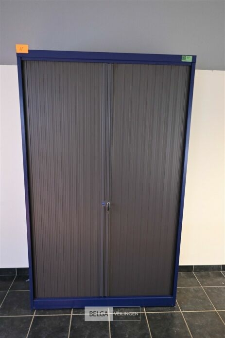 Kast, blauw met donkergrijze roldeuren / 3 leggers, afm 120x48x198 cm