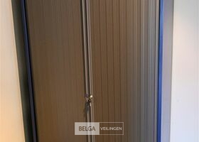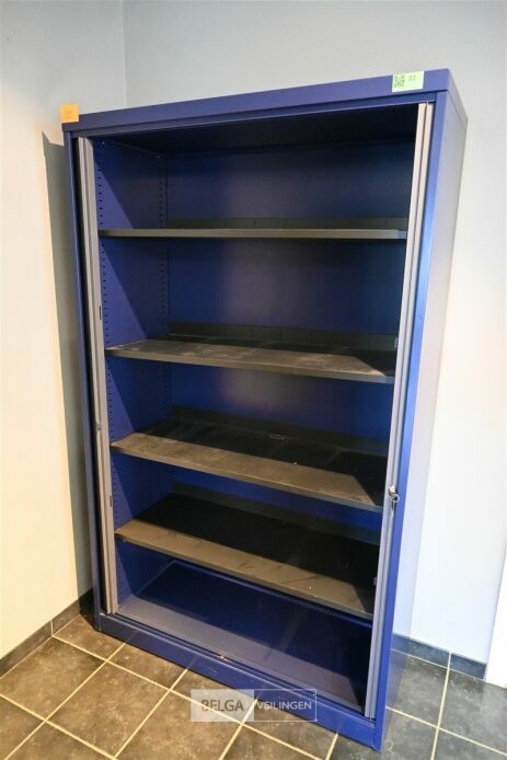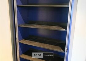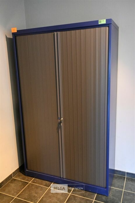Kast, blauw met donkergrijze roldeuren / 4 leggers, afm 120x48x198 cm