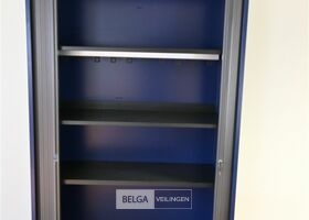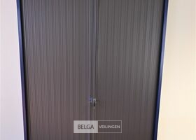 Kast, blauw met donkergrijze roldeuren / 3 leggers, afm 120x48x198 cm