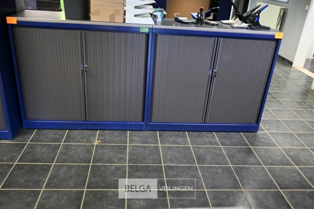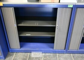 Kast, blauw met donkergrijze roldeuren / 2 leggers, afm 120x48x107 cm