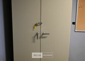 Kast, Biege met dubbel gelaagde deuren / 4 leggers, afm 100 x 54 x 200 cm