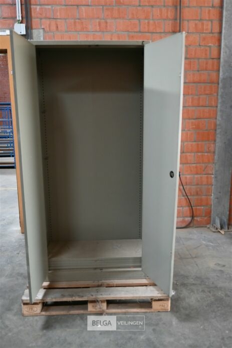 Grijs metalen kast 92 x 43 x 198 cm, 4 metalen Leggers