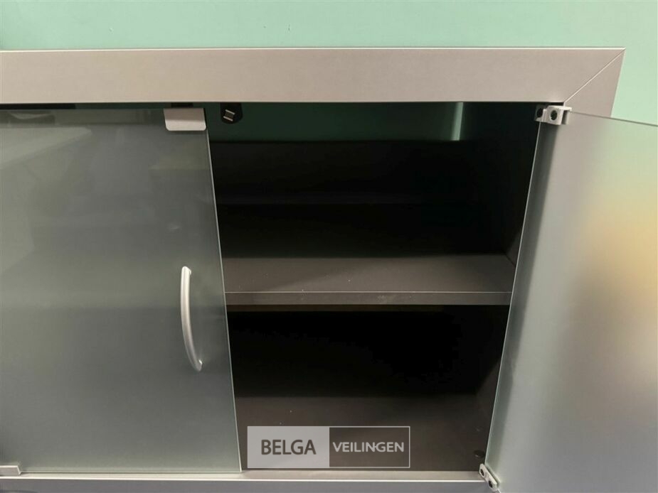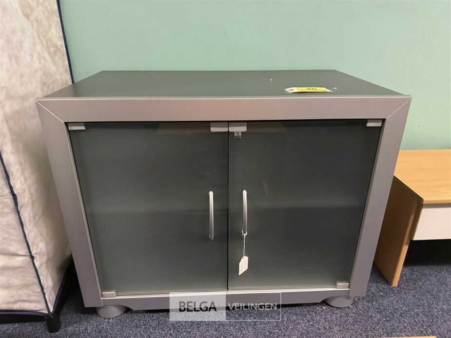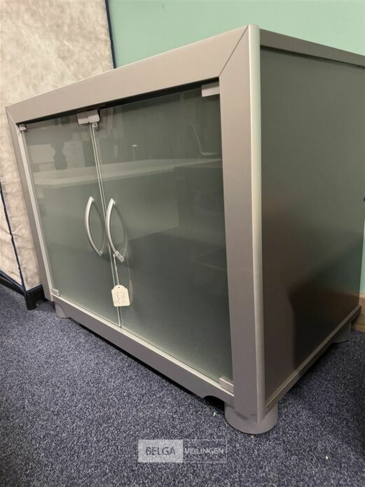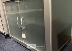 Kastje met melkglas deuren en 1 legger, H63 x B80 x D47 cm