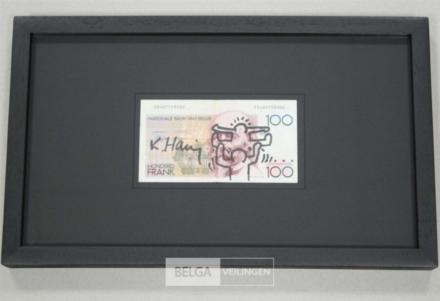 Originele tekening op bankbiljet 100 Bef. - in kader afmetingen 37,5x22,5