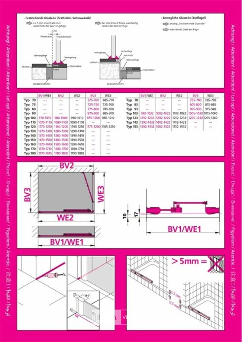 AT D2R/L 168 20 V. +CLEAN / 2-delige schuifdeur / Zilver hoogglans + Decor Strip 2 Clean / 1680mm / 2000mm