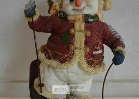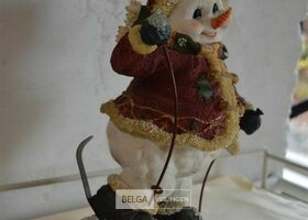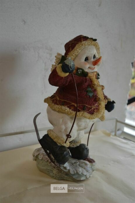 kerstdeco sneeuwman op skieën H=35cm