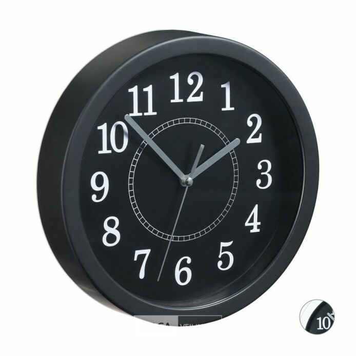 Wandklok rond 20 cm-retro met zacht tikkend geluid-retour van relaxdays